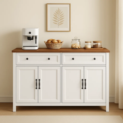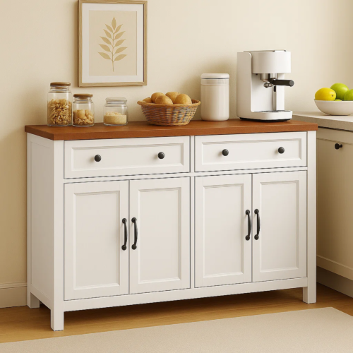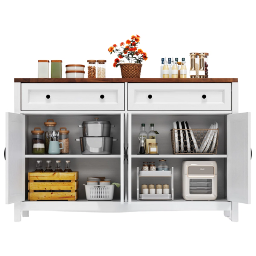 • Upgraded Storage Design — Features 3 smooth-gliding drawers and 4 doors with adjustable shelves, ideal for storing plates, small appliances, and pantry items