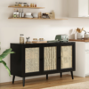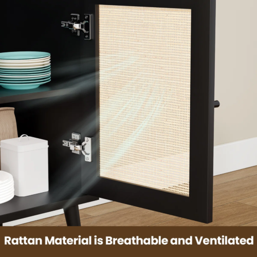 - Ventilated Design: The sideboard’s handcrafted rattan doors allow for optimal airflow, keeping stored items fresh and well-ventilated, ideal for kitchenware or other household items.