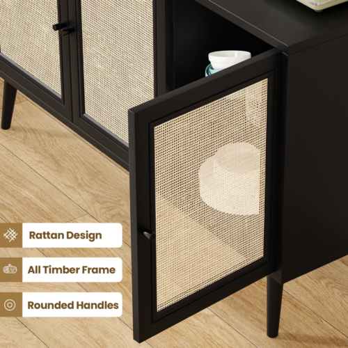 Imagine hosting a family dinner and effortlessly storing your tableware in style, or using it as a chic TV stand in the living room. The beautifully crafted rattan doors allow for ventilation, ensuring your items stay fresh. With adjustable shelves and a durable MDF frame, this sideboard is as practical as it is stylish. Whether in the kitchen, bedroom, or living room, it’s a versatile piece that blends seamlessly into any home.