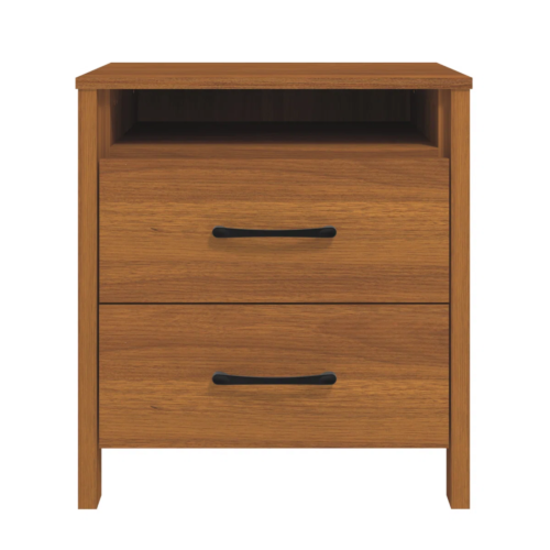 Bring modern minimalism to your bedroom with our 20.9” 2-Drawer Nightstand. Crafted from durable manufactured wood, it features a clean-lined silhouette and straight block legs that complement any contemporary space. Two smooth-glide drawers offer hidden storage for books, remotes and nighttime essentials while the open shelf keeps daily items like an alarm clock, tissue box, diffuse, or glasses case within easy reach. The tabletop is ideal for a small lamp or plant, adding a simple decorative touch. Compact yet spacious, this bedside table fits perfectly in both large and small bedrooms.