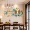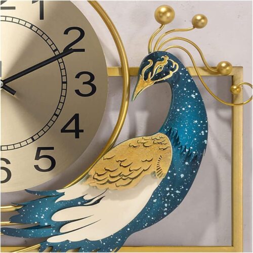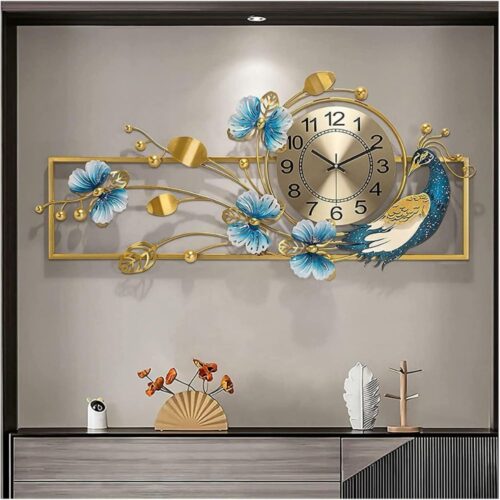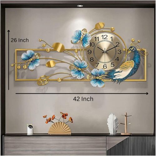 Framing Hub Large Metal Multicolor Peacock Leaf Wall Clock Floral Design Modern Decorative Clock for Living Room, Bedroom, Office, Dining (Size 42×26 Inch).