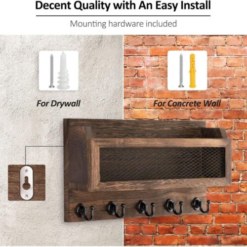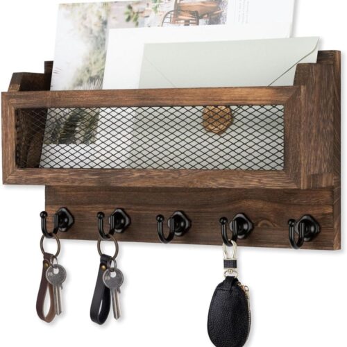 - Durable Key and Mail Holder. Crafted from high-quality solid wood and sturdy metal key hooks, this farmhouse vintage key holder adds a touch of rustic charm to your home space. Nice for entryways, hallways, mudrooms, offices, and beyond, it complements rustic home decor seamlessly.