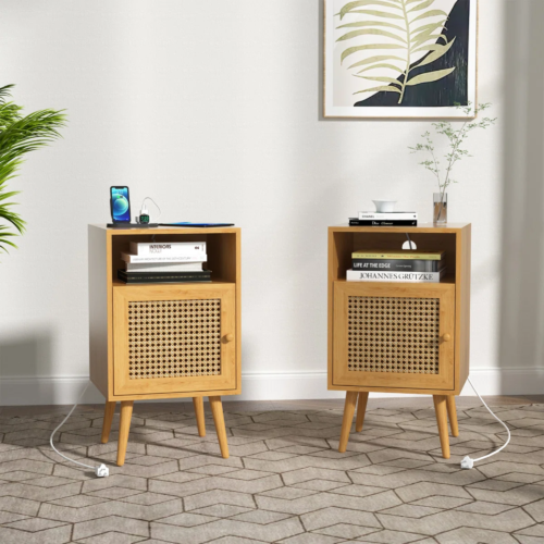 - Built-in charging: Our rattan nightstand features a charging station with 2 AC outlets, 2 USB ports, and a 4.5ft power cord for easy device charging