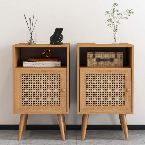 Adding a natural touch and warmth to a bedroom, this rattan nightstand provides practical storage solutions for bedrooms or rooms with limited space.
