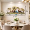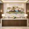 Modern Luxury Wall Art Design The elegant blend of white horses, golden sun elements, and blue waves creates a striking focal point that complements both modern and traditional interiors.