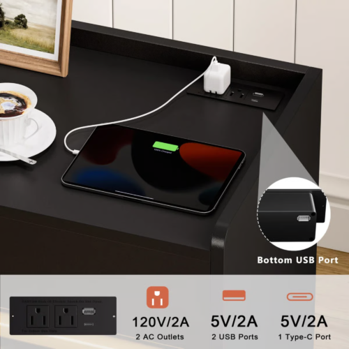 - 【Convenient Built-in Outlet】A built-in power outlet allows for easy charging of electronic devices such as phones, lamps, or other gadgets, keeping your space neat and organized without the hassle of extra cables.
