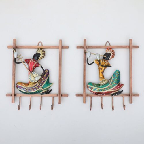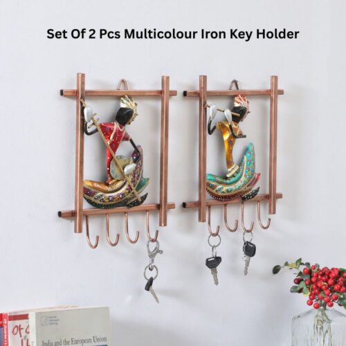 Unique Handpainted Design Bring your walls to life with this eye-catching key holder featuring vibrantly handpainted musician figures. A perfect blend of art and utility, it adds a creative, boho-inspired touch to your home décor. Multifunctional & Practical Designed with 5 sturdy metal hooks, this decorative wall key hanger is ideal for organizing keys, lanyards, keychains, jewelry, or other small accessories—keeping your entryway neat and stylish. Durable & Long-Lasting Build Crafted from premium quality metal with a smooth finish, this key holder is built to last. Its durable construction ensures resistance to rust, fading, and everyday wear. Versatile Wall Décor Accent Whether placed in the living room, hallway, kitchen, or office, this multicolor key organizer doubles as a decorative piece, adding a splash of vibrant charm to any space. Perfect Gift Option Looking for a thoughtful housewarming gift or festive present? This artistic key holder is a great choice for birthdays, anniversaries, Diwali, or other special celebrations.