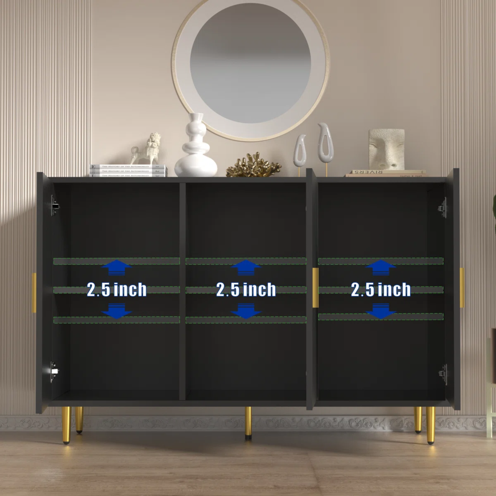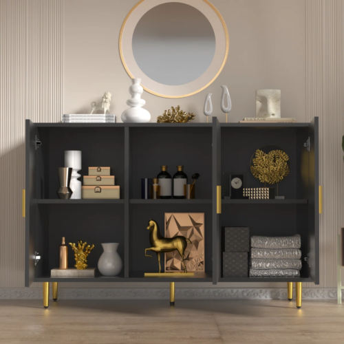 - Hide your things with closed storage. Our buffet cabinet comes with a 3-door closed area, where the shelves can be adjusted up and down 2.5in helping store and organise to keep your space tidy and clear – perfect for for ceramics, artwork, bags and accessories.