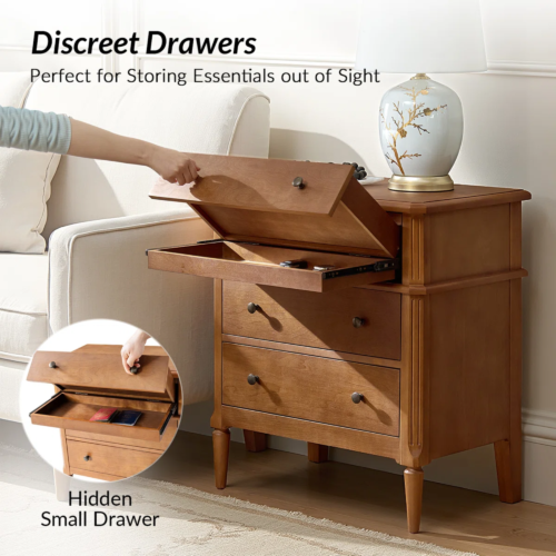 - Hidden Top Drawer Compartment: Features a cleverly concealed section within the top drawer, ideal for storing private items such as jewelry, documents, or personal essentials with added security and discretion.