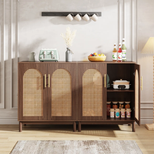 - VERSATILE MATCH FOR BUFFET CABINET: The rattan sideboard can be widely used as a storage cabinet, coffee bar cabinet, accent storage cabinet and TV console as you need. All-match design indoor furniture fits the kitchen, living room, dining room, office. The multi-functional feature makes it convenient for you to place it anywhere in your home.