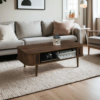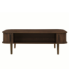 Upgrade your home with this Scandinavian-inspired modern coffee table with storage, designed to blend style, warmth, and function in one elegant piece. Made from durable engineered wood, this rectangular coffee table features rounded corners, slatted tambour-style cabinet doors, and slim tapered legs that echo mid-century modern and Japandi-style furniture. Its spacious tabletop offers ample room for drinks, trays, coffee table books, or decorative accents, while smooth-sliding tambour doors open to reveal concealed storage compartments — perfect for organizing living room essentials like remotes, games, or electronics. A central open shelf adds extra space for magazines, décor, or everyday items, making this multi-functional storage coffee table ideal for apartments, condos, and small living rooms. The elevated base makes cleaning underneath easy and adds a light, airy feel to your space. Whether you’re creating a minimalist setup or a cozy reading corner, this stylish coffee table with hidden storage brings together modern design and practical organization in one beautifully streamlined centerpiece.