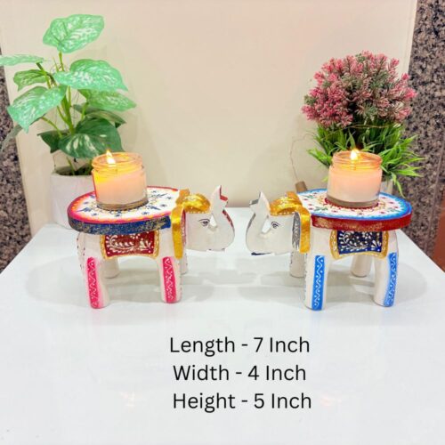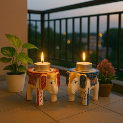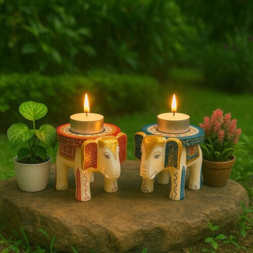 • Handcrafted elephant tealight holders – Set of 2 decorative pieces